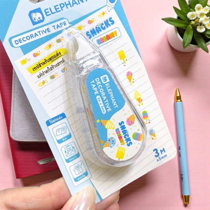 Băng keo trang trí Elephant Decorative Tape 3m x 5mm dạng bút kéo tiện lợi