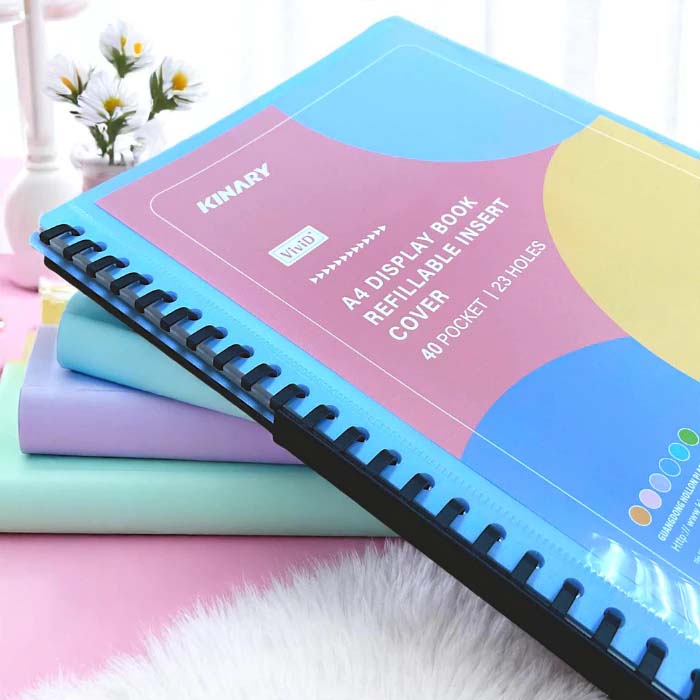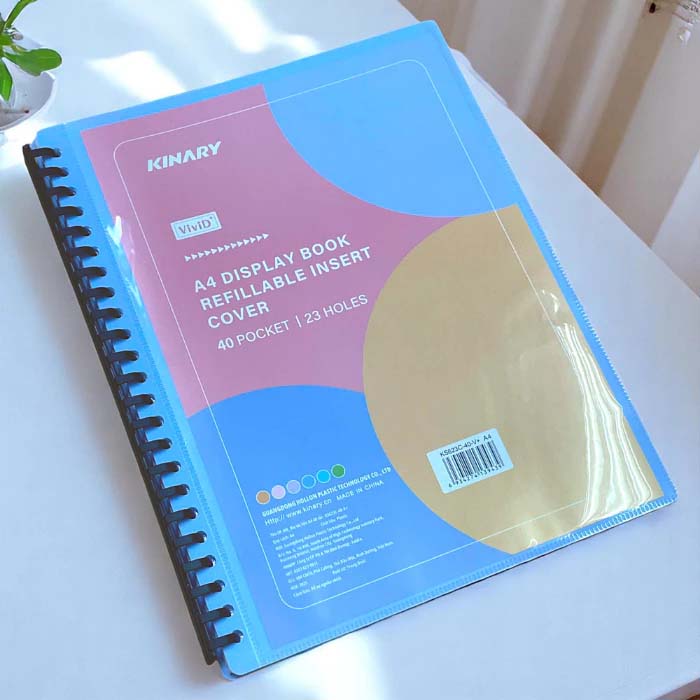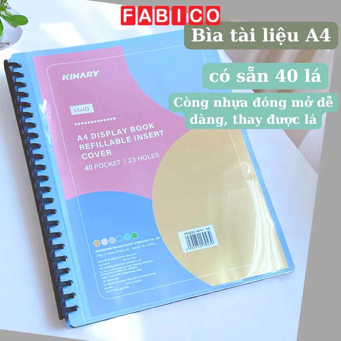 Bìa File Lá Chống Nước Còng Nhựa A4 Kinary Kèm 40 Lá Đựng File