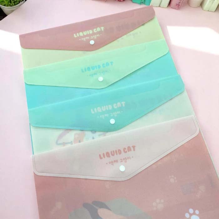 Bìa nút màu Pastel A4 Elephant Liquid Cat dùng đựng hồ sơ, tài liệu phù hợp học sinh, văn phòng