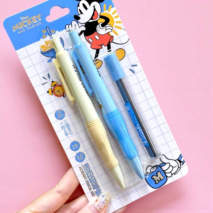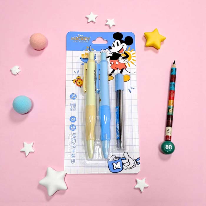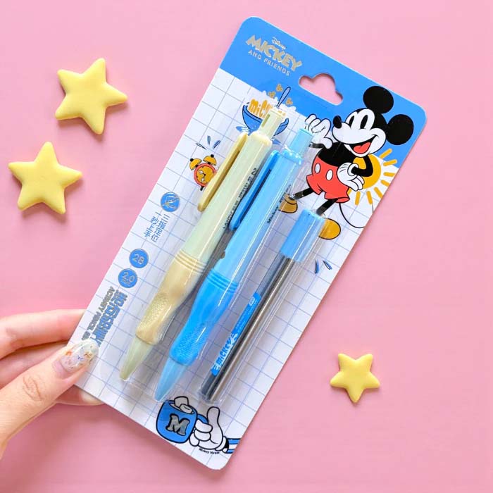 Bộ 2 Cây Bút Chì 2B Chuốt Tự Động Kèm Ruột Mickey Disney Pastel