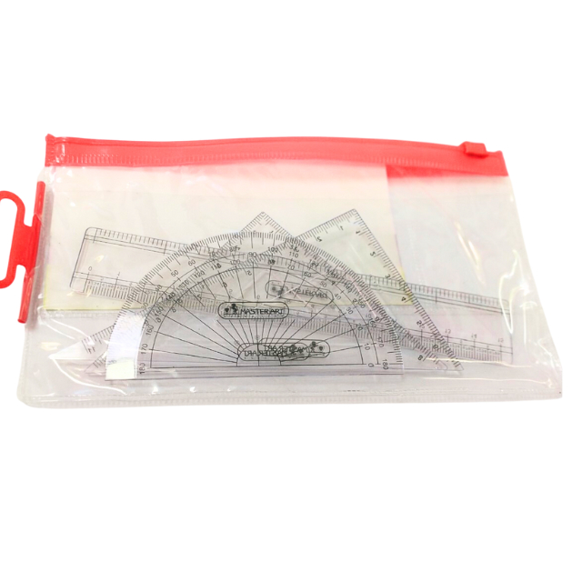 Bộ 4 Món Thước Đo Học Sinh Kèm Túi Khóa Zip Master Art