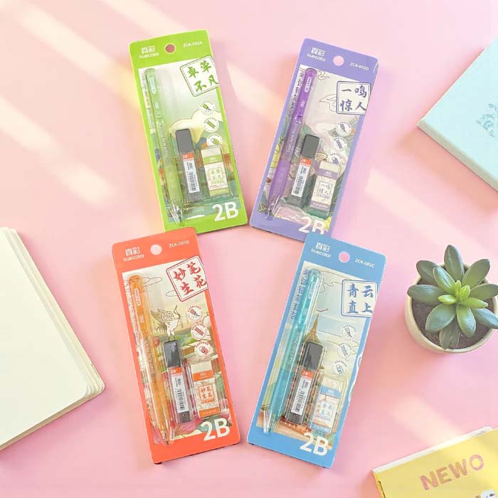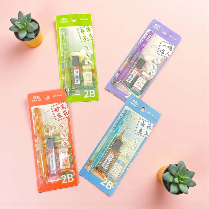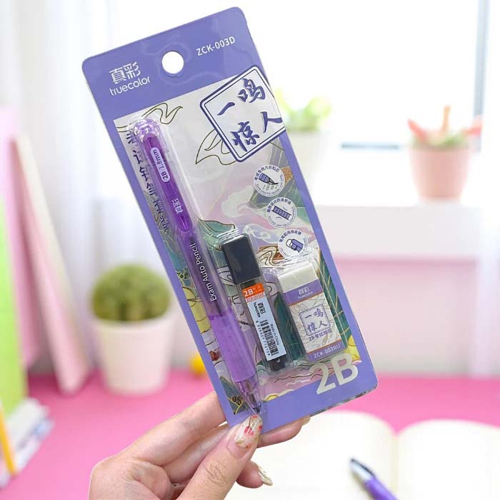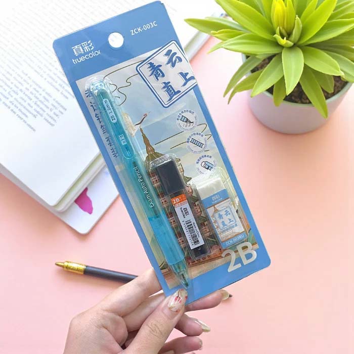Bộ Bút Chì Kim Bấm 2B Ngòi 1.8mm Truecolor - Kèm Gôm Và Ruột Chì