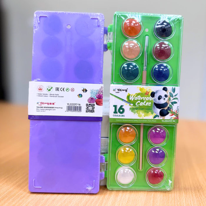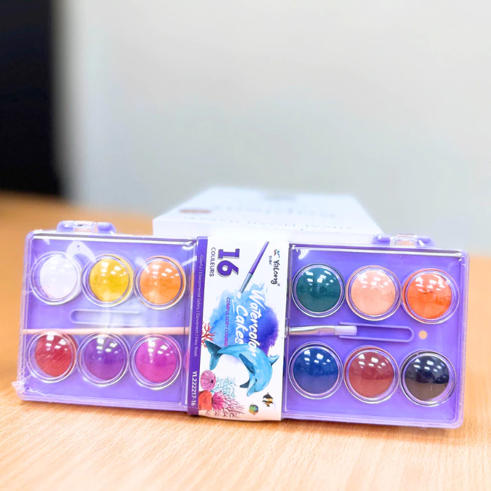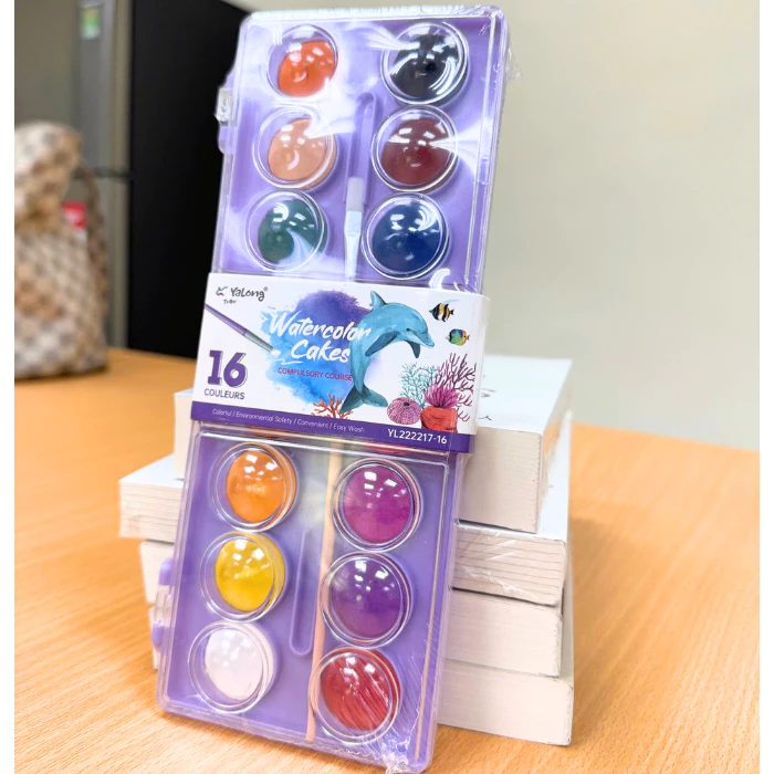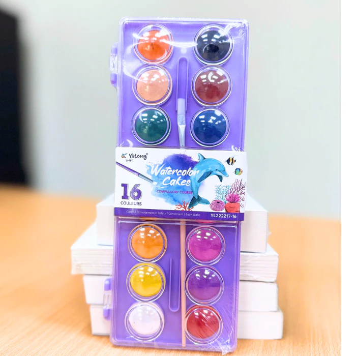 Bộ Màu Nước Dạng Nén Water Color Cake Yalong 16 Màu Tươi Đậm Mịn Dễ Hòa Tan Tô Màu Vẽ Tranh Học Sinh Chuyên Nghiệp