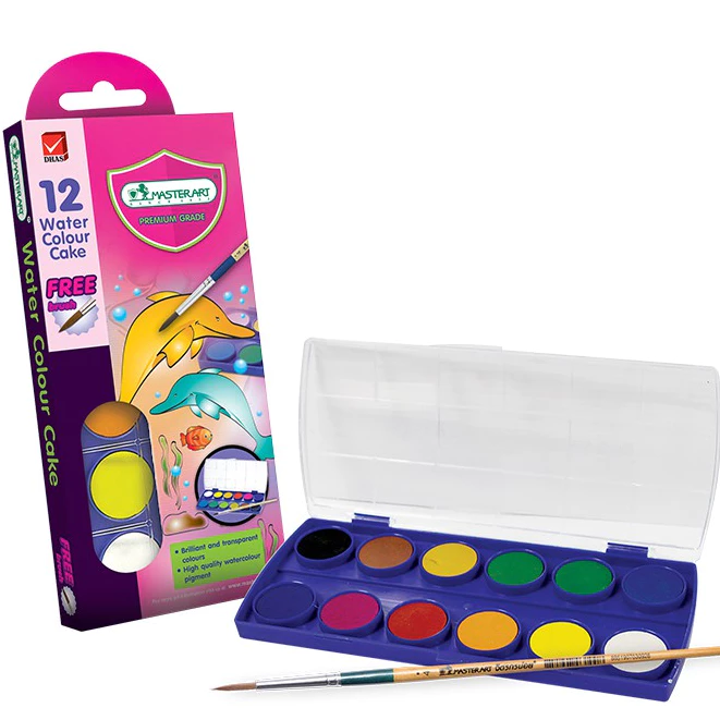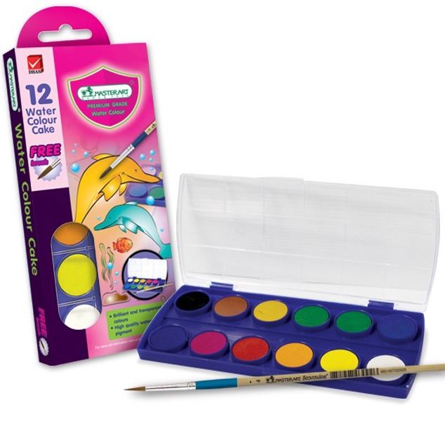 Bộ Màu Nước Khô, Màu Dạng Nén 12/24 Màu Master Art 3ml Hộp Nhựa Không Độc Hại An Toàn Cho Bé