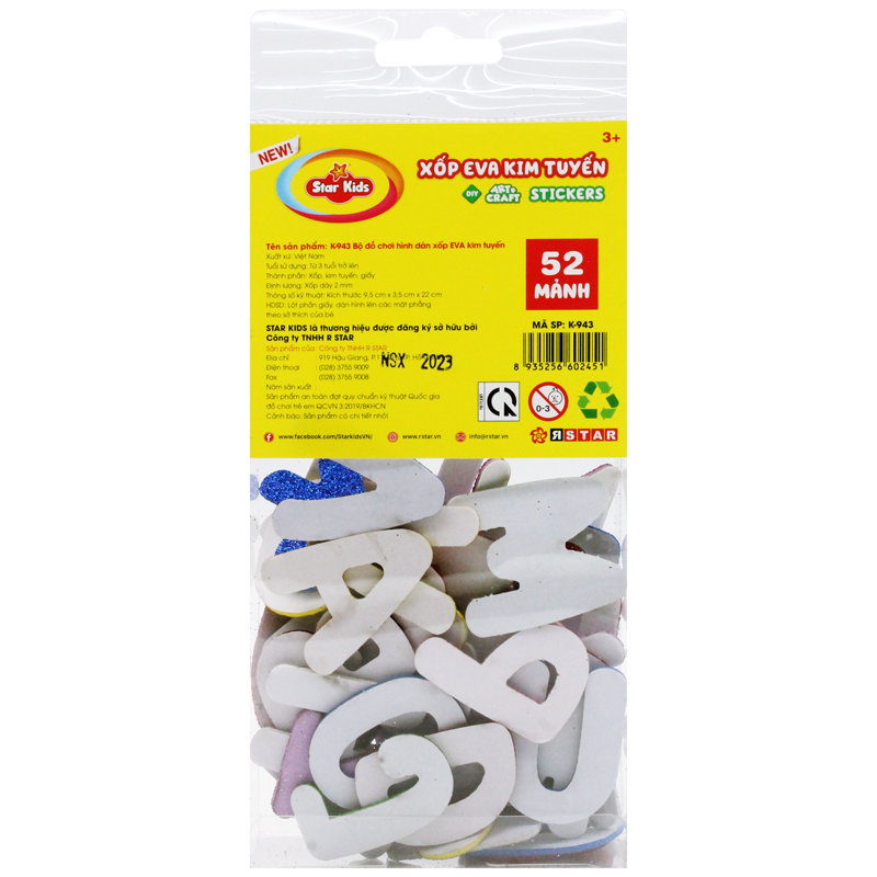 Bộ Đồ Chơi Hình Dán Xốp EVA Kim Tuyến - Star Kids K-943 - Hình Chữ (52 Mảnh Ghép)