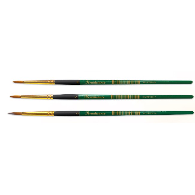Bộ Set 3 Bút Cọ Vẽ Đầu Tròn Renaissance Cỡ 0/2/6 Cao Cấp Thái Lan