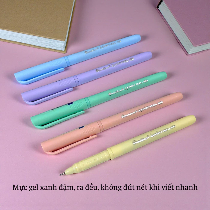 Bút gel Quantum Jammy mực xanh 0.7mm thân pastel viết êm mực đều