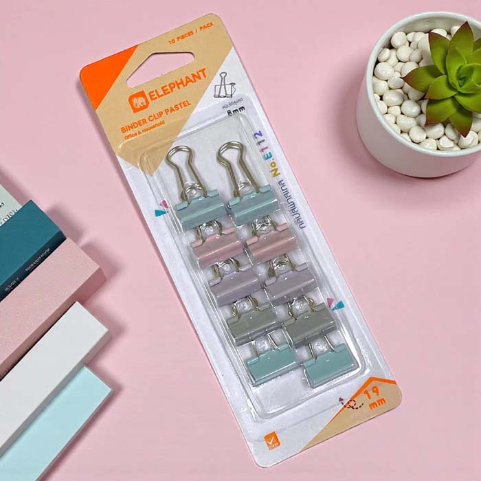 Combo 3 Vỉ Kẹp Bướm Elephant Màu Pastel Kẹp Giấy 19mm E112 ( Vỉ 10 Cái)