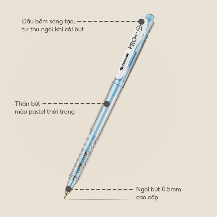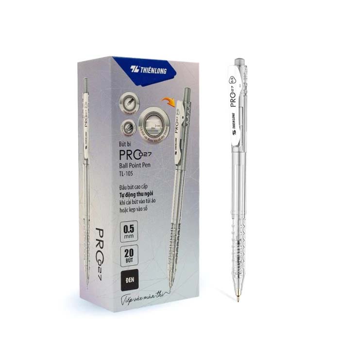 Bút Bi Pastel Pro 027 Ngòi 0.5 mm Thiên Long TL-105 Mực Xanh/Đỏ/Đen