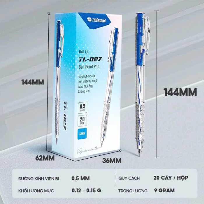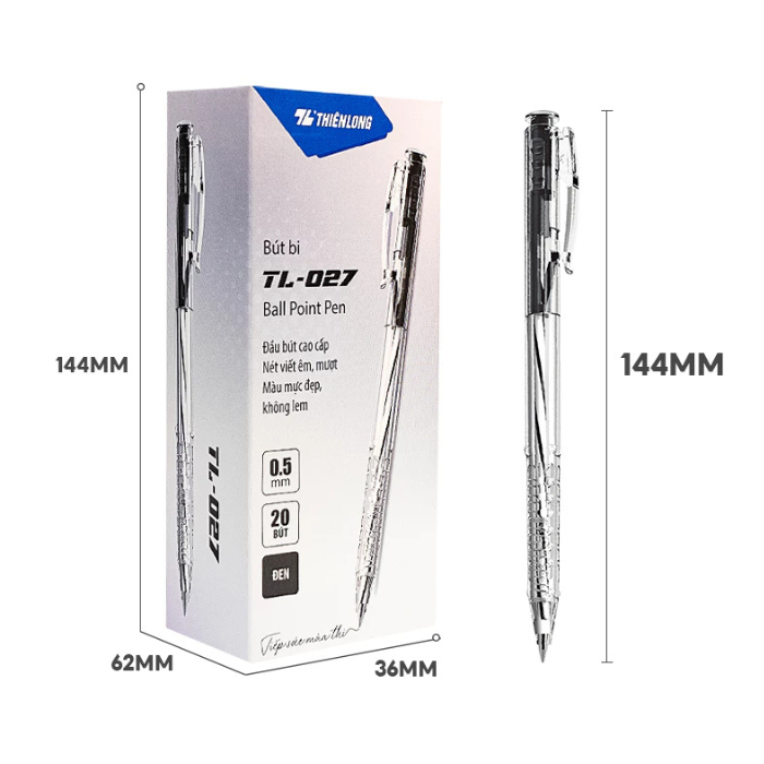 Combo 5 Cây Bút Bi Thiên Long TL-027 Nét Nhỏ Ngòi 0.5mm
