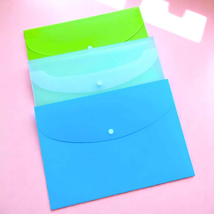 Combo 5 Túi File Nút Nhựa Cứng Đựng Tài Liệu A4 Kinary Nhiều Màu