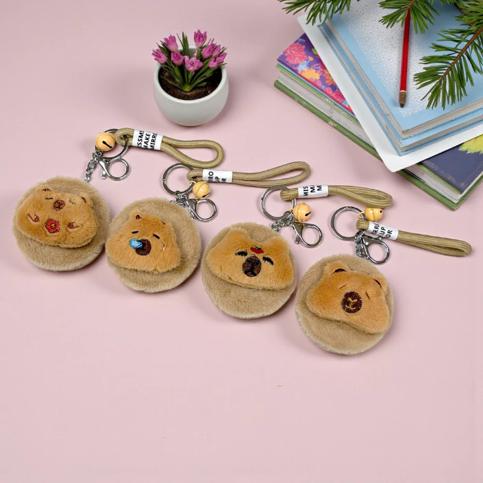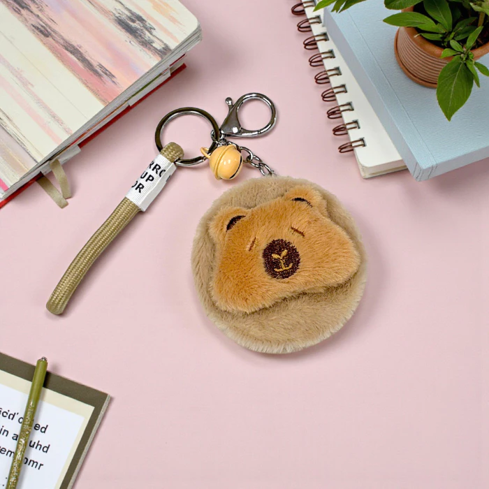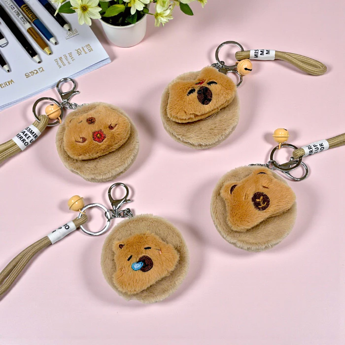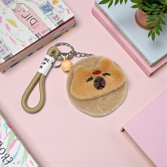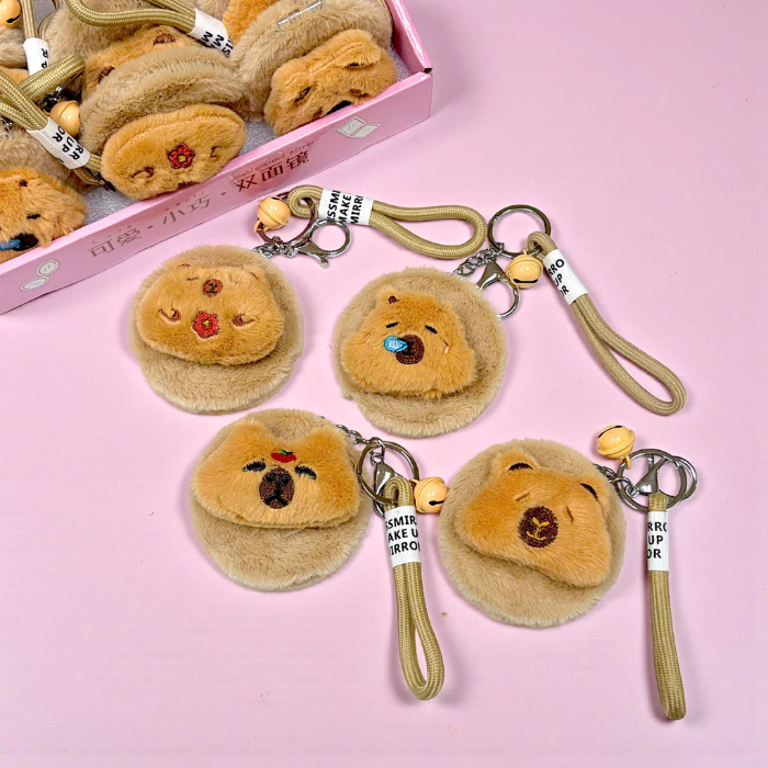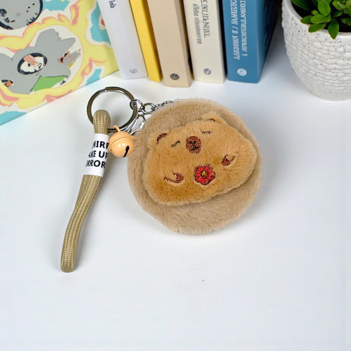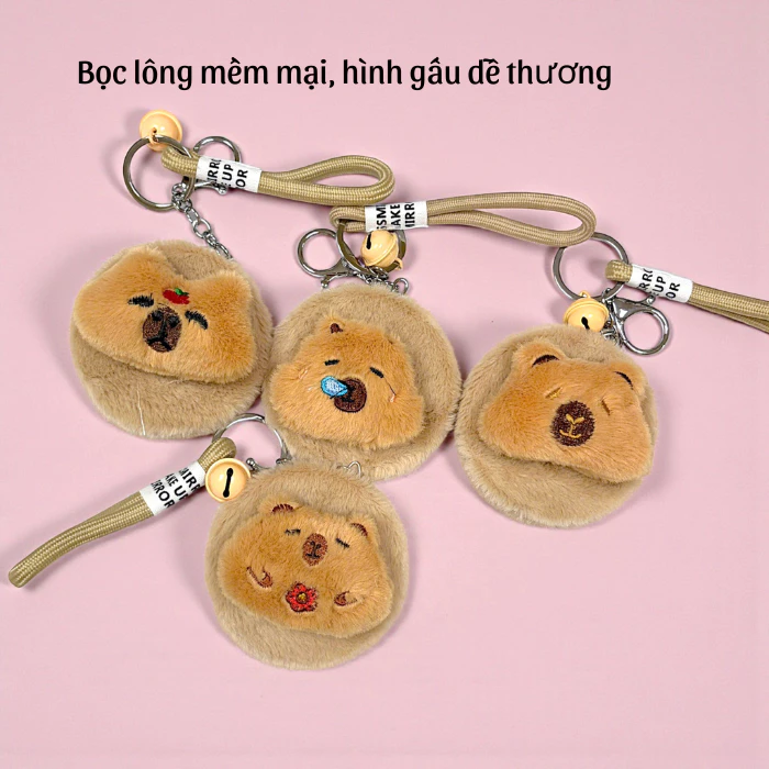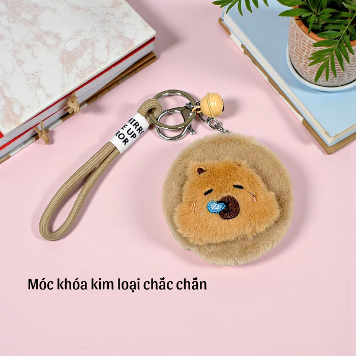 Gương Mini 2 Mặt Bọc Lông Dễ Thương Có Móc Khóa Nhỏ Gọn