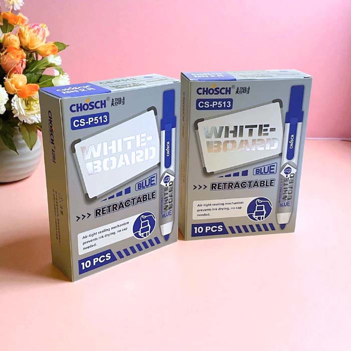 Hộp 10 Cây Bút Lông Bảng Viết Bảng Trắng Xóa Được - CHOSCH CS-P513 Mực Xanh