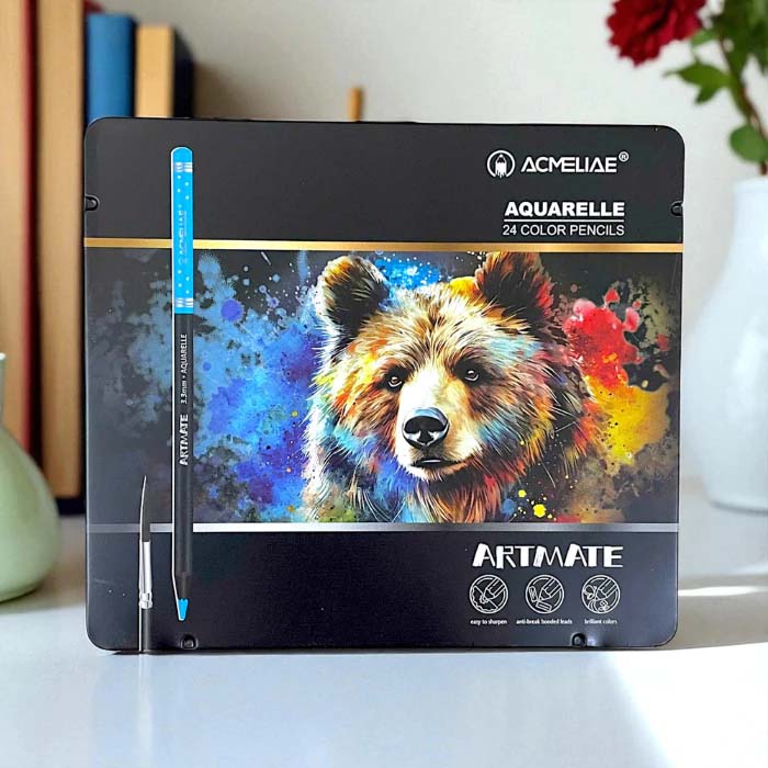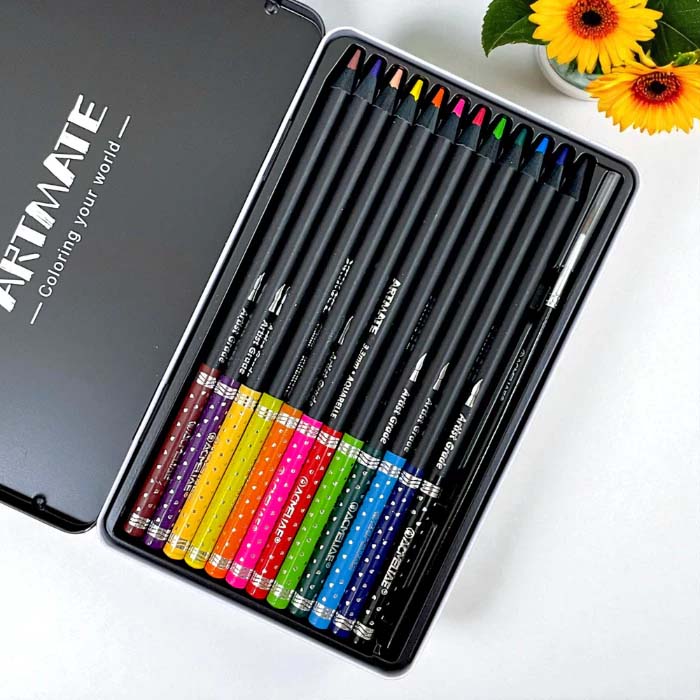 Hộp Thiếc 12/24 Bút Chì Màu Nước Kèm Cọ - Acmeliae