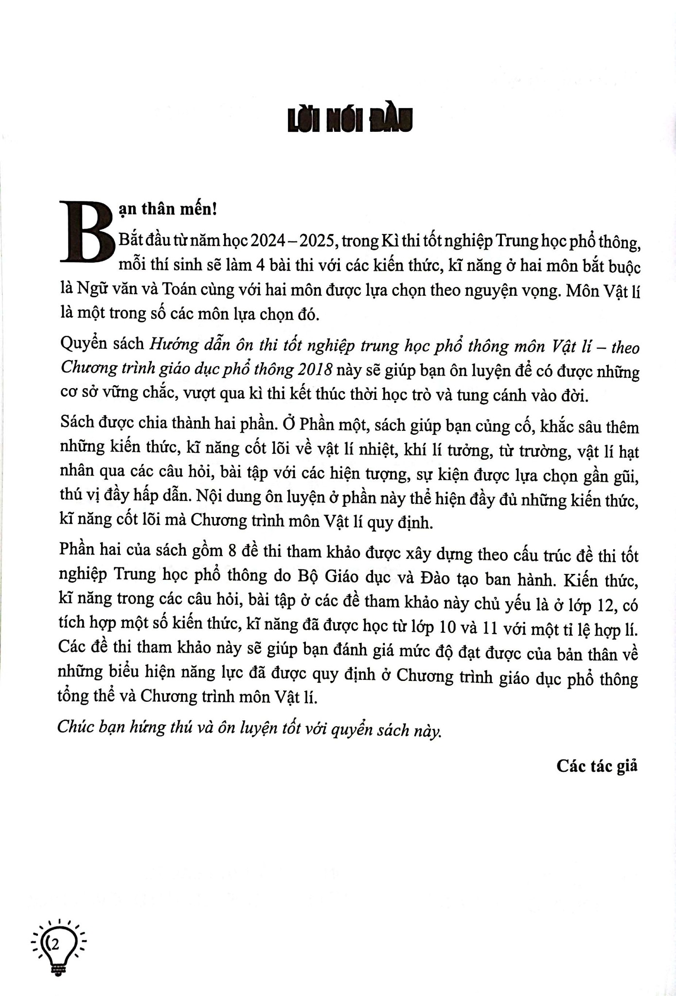 Hướng Dẫn Ôn Thi Tốt Nghiệp Trung Học Phổ Thông - Môn Vật Lí (Theo Chương Trình Giáo Dục Phổ Thông 2018)