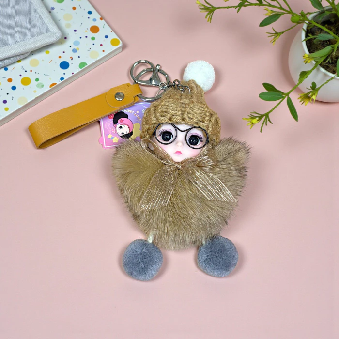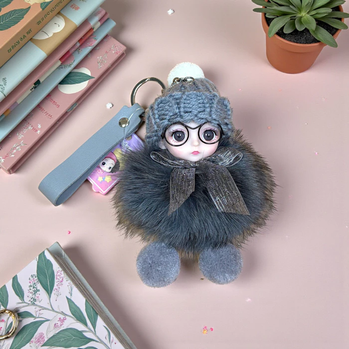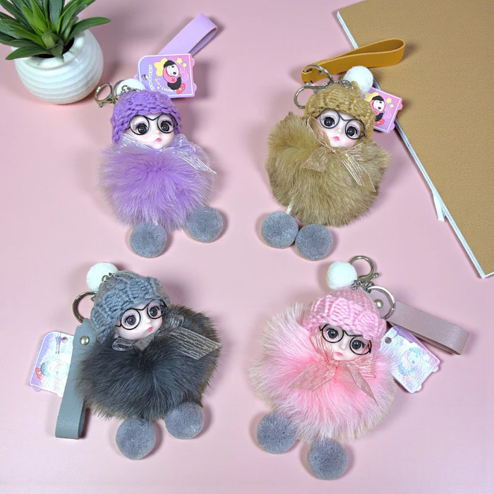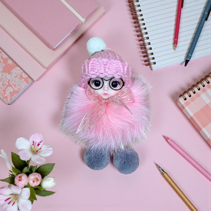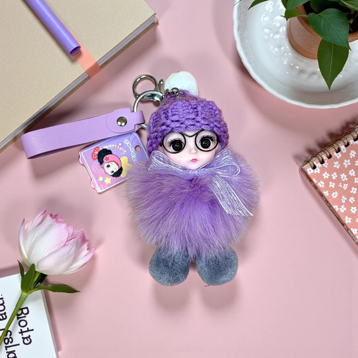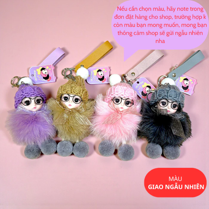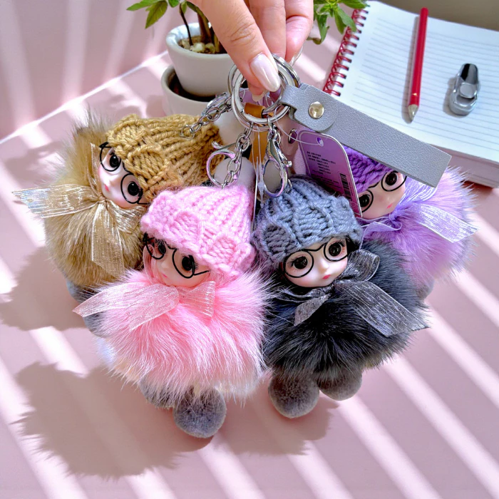 Móc khóa búp bê lông xù đội mũ len dễ thương treo túi xách balo phong cách Hàn Quốc