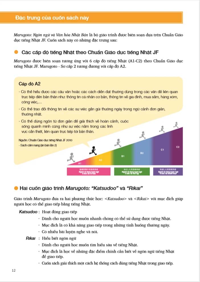 Cấp độ A2 thuộc mức độ sơ cấp và trình độ A2-2 là trình độ nâng cao hơn sau khi bạn đã học qua A2-1. Tương tự với những cuốn Marugoto trước đó, Marugoto -  Ngôn ngữ và Văn hóa Nhật Bản A2-2 cũng được chia làm 2 quyển “Katsudoo” (Hoạt động giao tiếp) và “Rikai” (Hiểu biết ngôn ngữ). Qua đó có thể giúp người học lựa chọn được phương pháp sử dụng giáo trình tùy theo nhu cầu và cách học của mình.