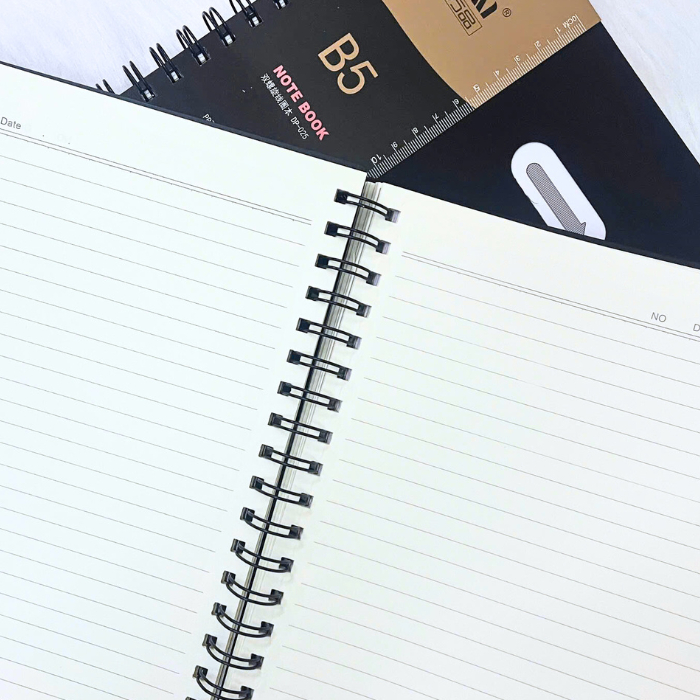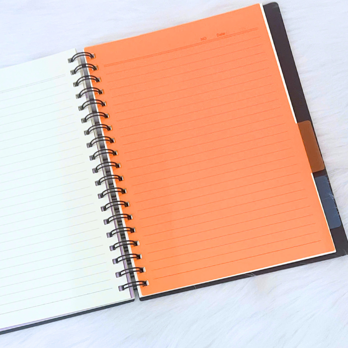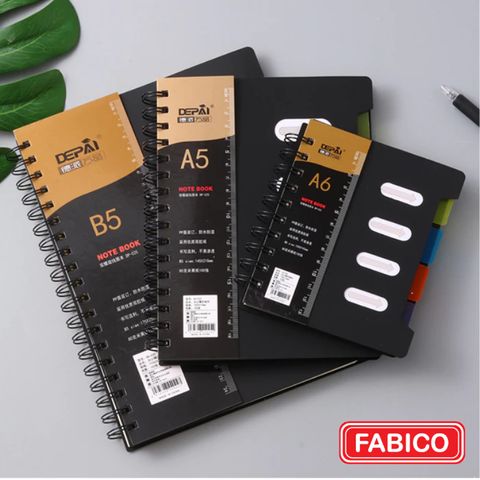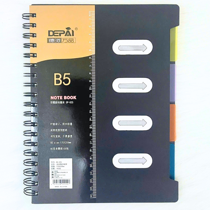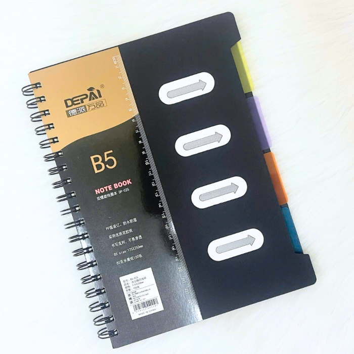 Sổ Lò Xo Phân Trang B5 DEPAI Bìa Nhựa Đen Giấy Kẻ Ngang 200 Trang 80g