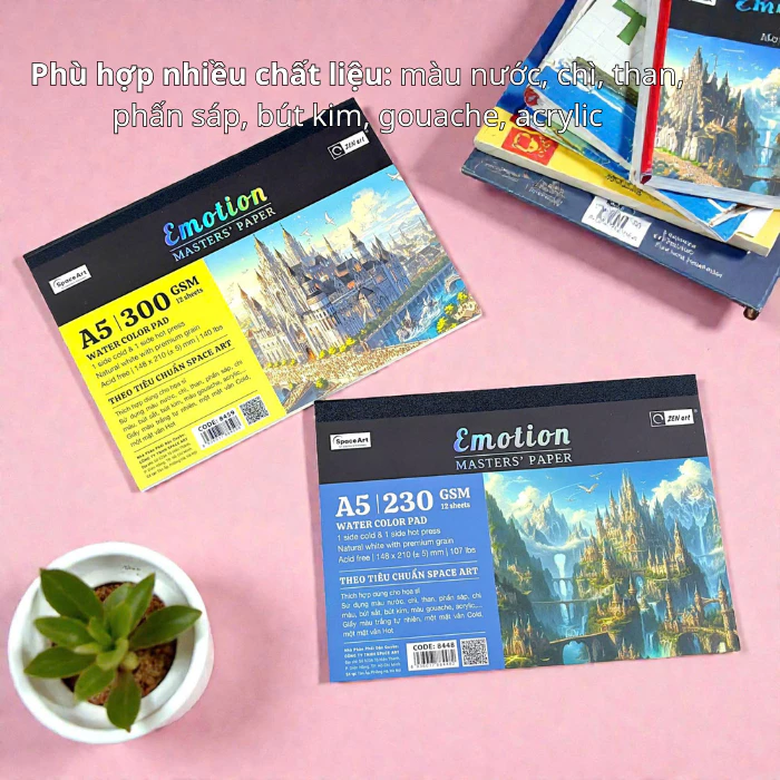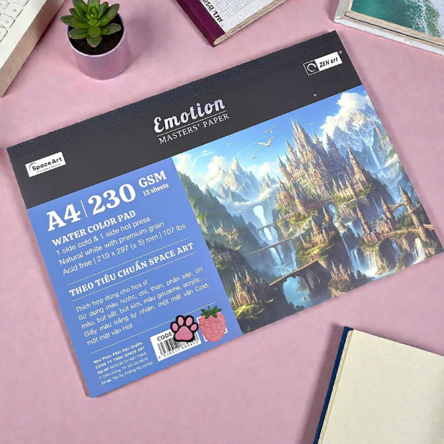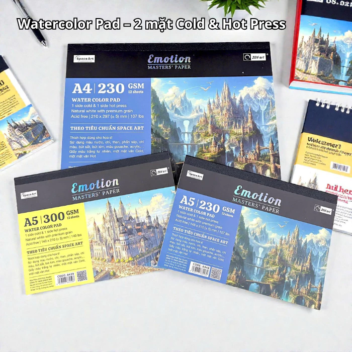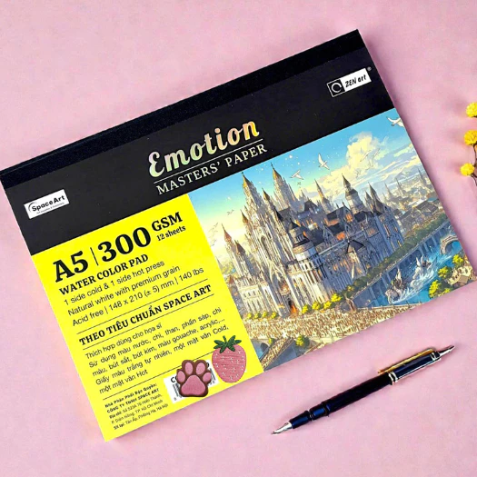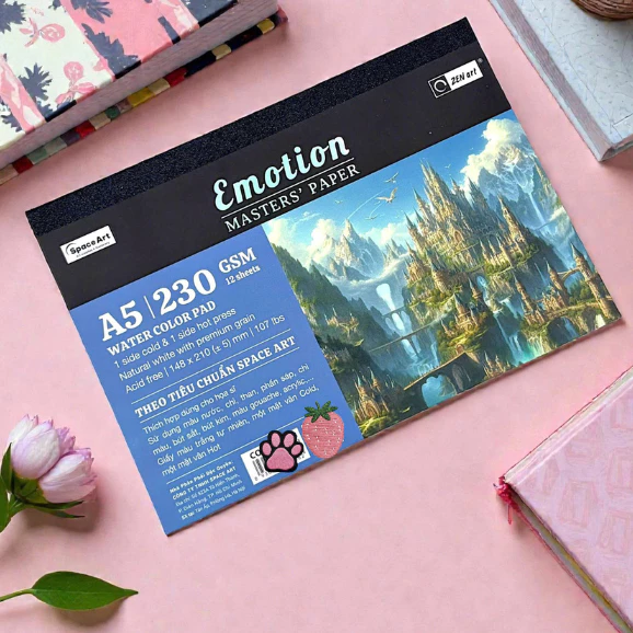 Tập 12 Tờ Giấy Vẽ Màu Nước Emotion Masters Paper 2 Mặt Cold Hot Press