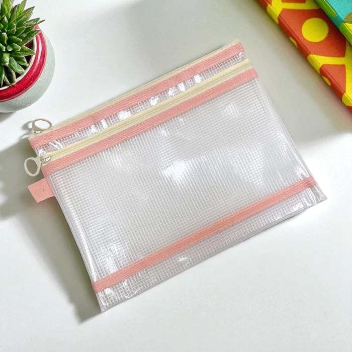 Túi Đựng Tài liệu Trong Suốt A5 KinhShion - Túi 2 Ngăn Chống Nước Có Khóa Kéo Đựng