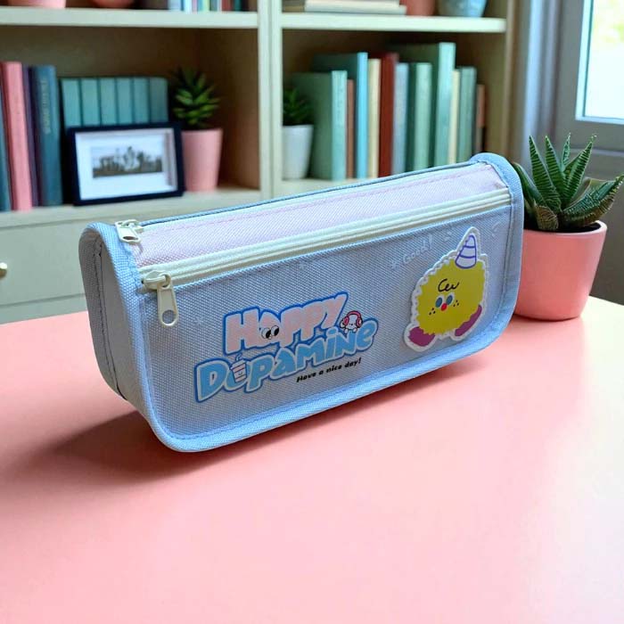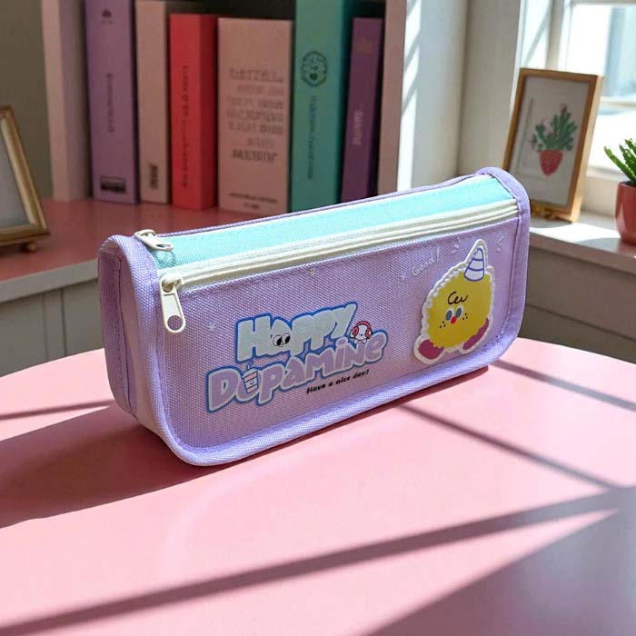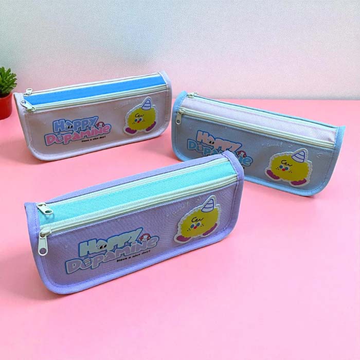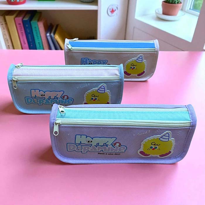 Túi Vải Canvas Đựng Bút Học Sinh 2 Ngăn Happy Dopamine